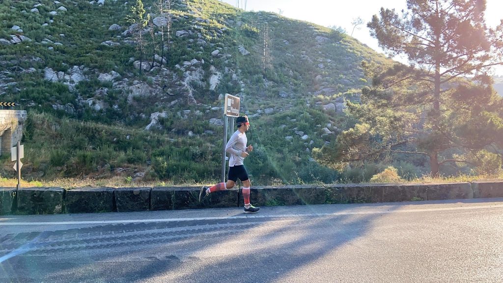 Para mim é relativo e vago falar em termos de “duro” ou “soft” para me referir ao desempenho numa prova ou num desafio. Mas assumindo que “duro” significa levar o corpo até muito perto dos limites físico e mental, então não tenho dúvidas que a minha tentativa de percorrer os 738,5 quilómetros da Estrada Nacional 2, onde tive que abandonar ao quilómetro 461, foi até agora o desafio mais difícil de todos. Foi muito frustrante perceber que o corpo já não aguentava continuar em frente apesar da minha mente continuar com todo o foco no destino final. Daqui aprendi uma lição, para mim muito valiosa: reservar um treino de corrida semanal para aperfeiçoar o equilíbrio entre a capacidade física e o desempenho mental, procurando respirar em consciência e de forma sincronizada com os movimentos corporais. Em relação ao desafio ou prova menos “duro” foi, talvez, no Campeonato Distrital de Cross Longo deste ano de 2020, pois no final senti que não estava suficientemente cansado e poderia ter dado muito mais.
